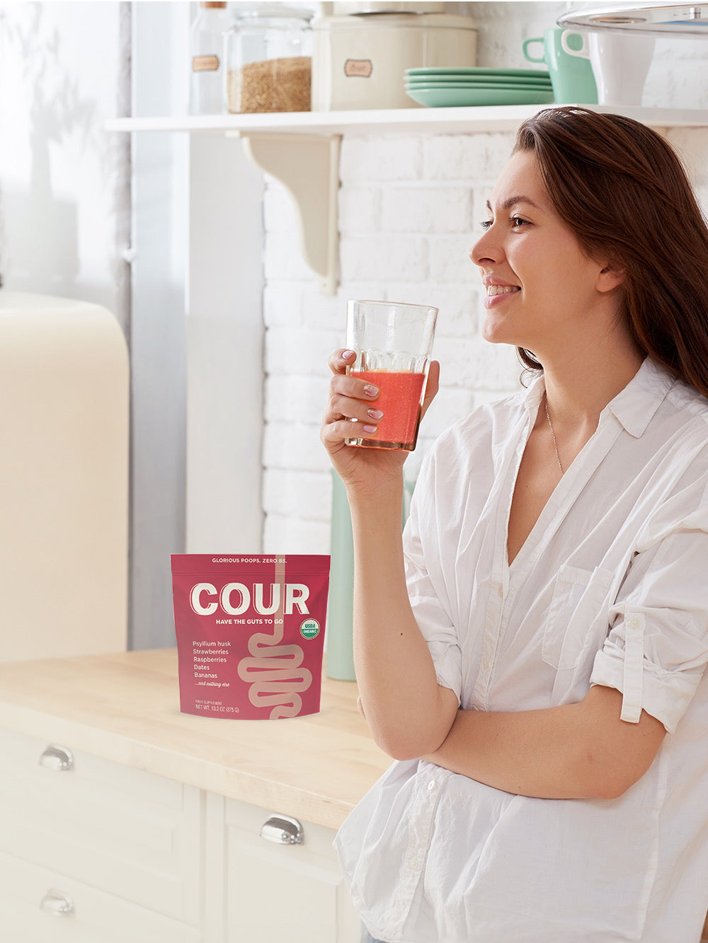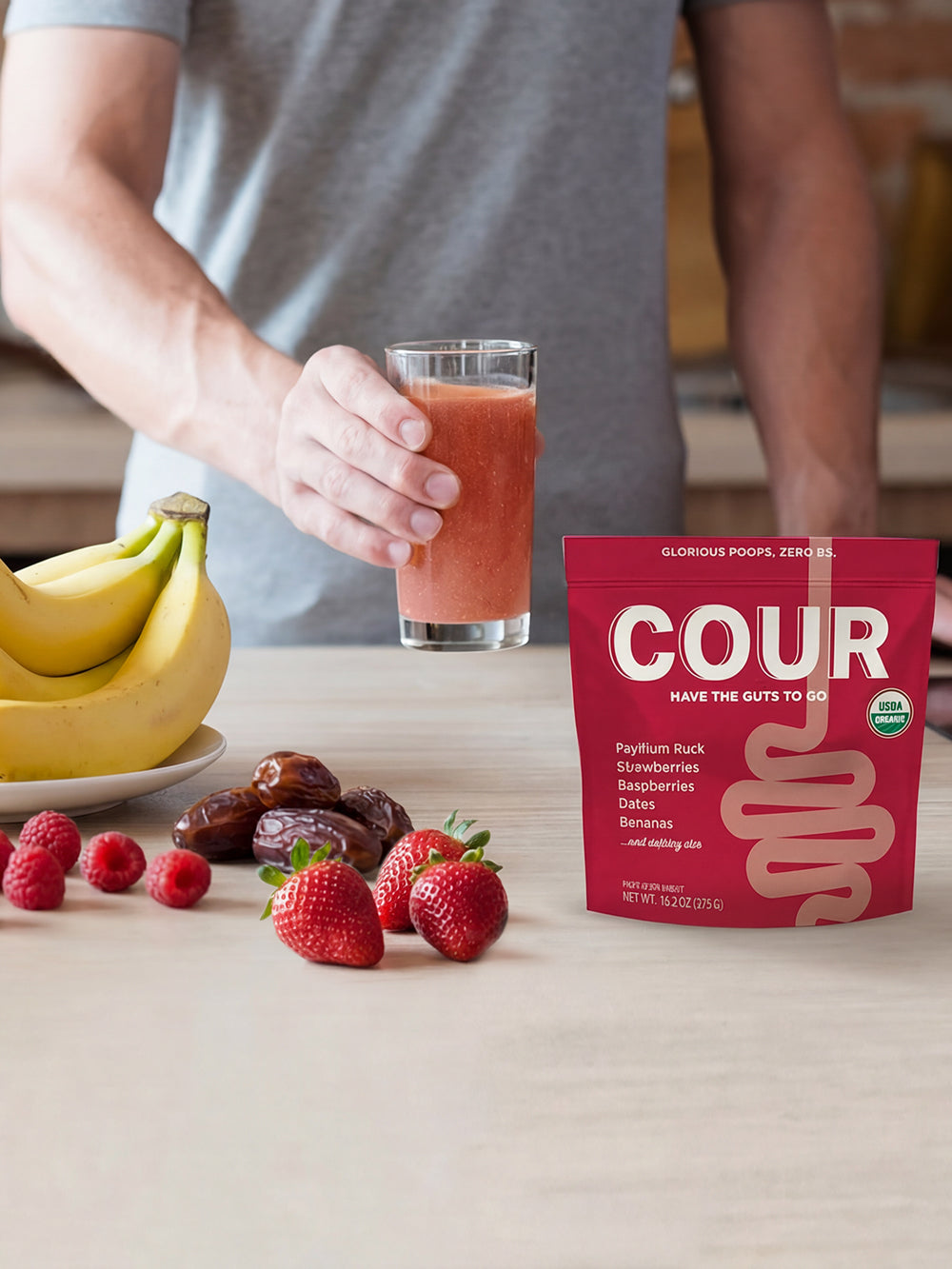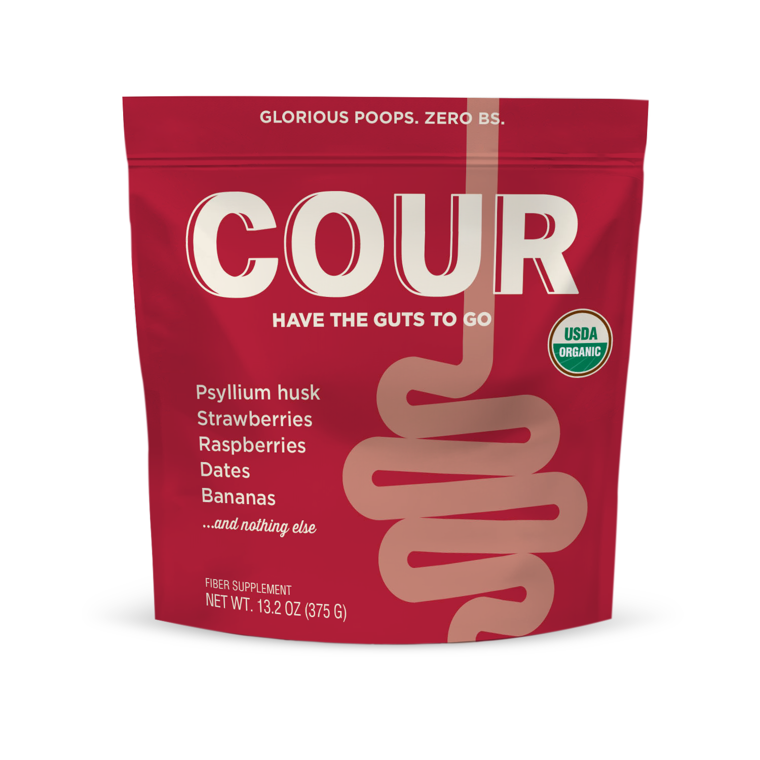 Cour is made with just real, organic food: psyllium husk (one of the most research-backed fibers) + fruit. No added sugar, no artificial sweeteners, no stevia or monk fruit, no fillers, dyes, or preservatives.