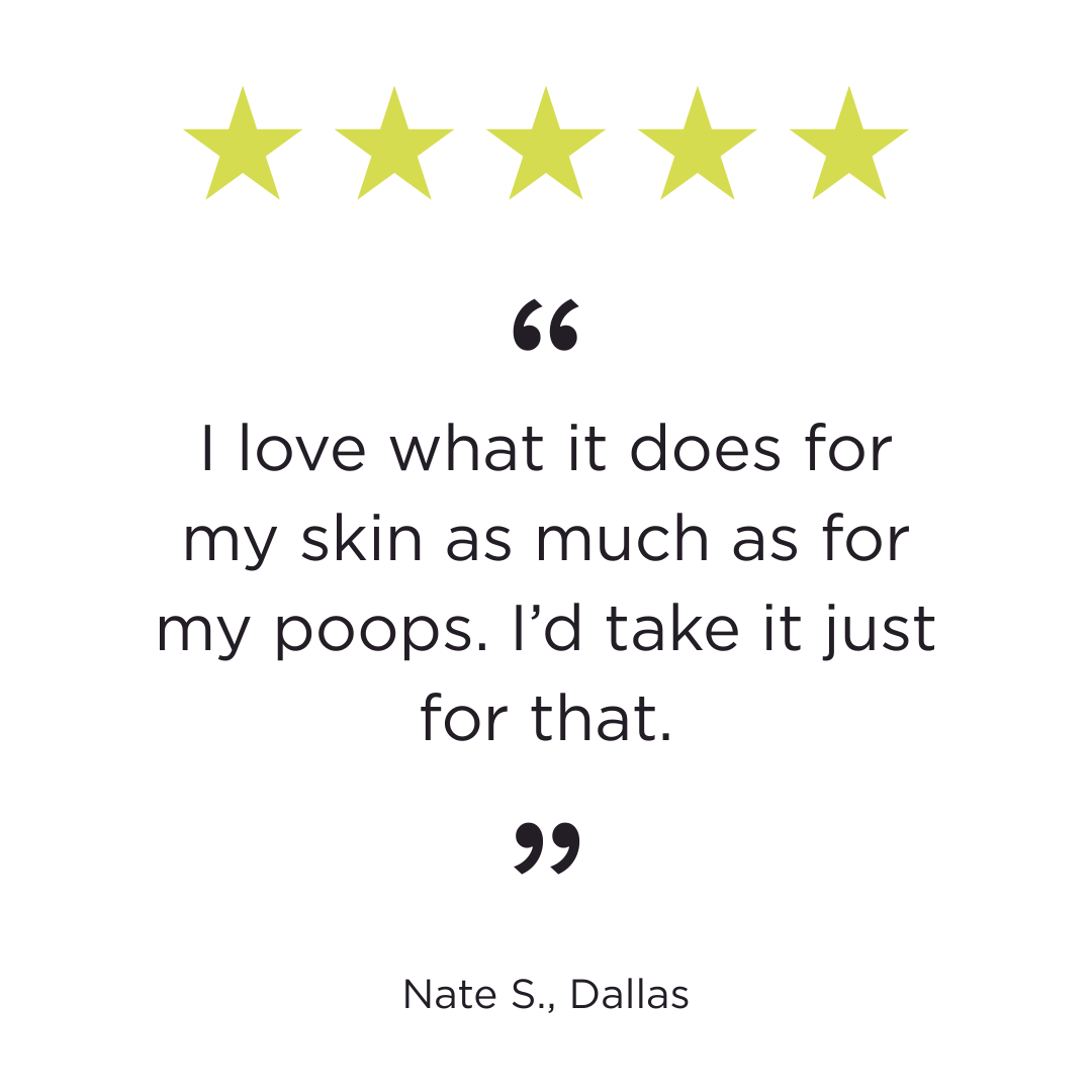 Take daily for epic poops. Mix one serving into water or your favorite drink. And stay hydrated! Fiber needs water to work.